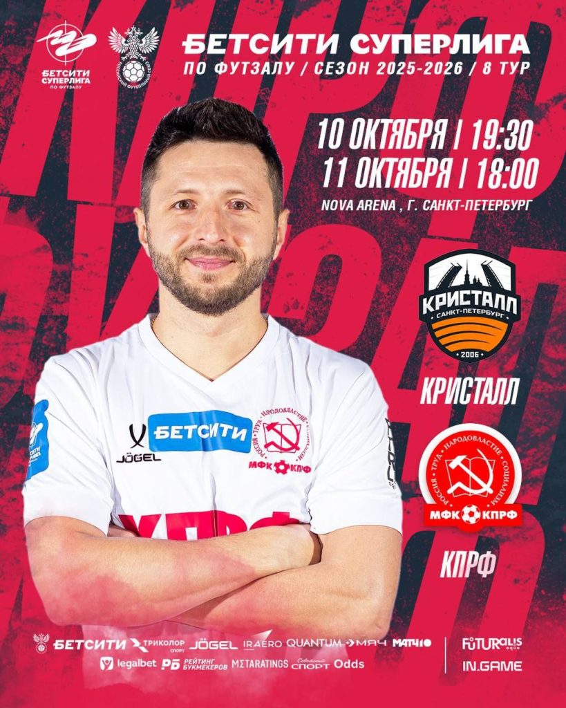 Один выходной после энергозатратных поединков против «Новой генерации» — и вот уже МФК КПРФ отправляется на выездной тур. Действующие обладатели Кубка России в Петербурге сразятся с «Кристаллом».Нашей команде нужно постараться вновь взять шесть очков в туре, чтобы продолжить преследование лидера регулярного чемпионата, «Газпром-Югры».Матчи «Кристалл» — МФК КПРФ пройдут в NOVA ARENA (г.Санкт-Петербург):