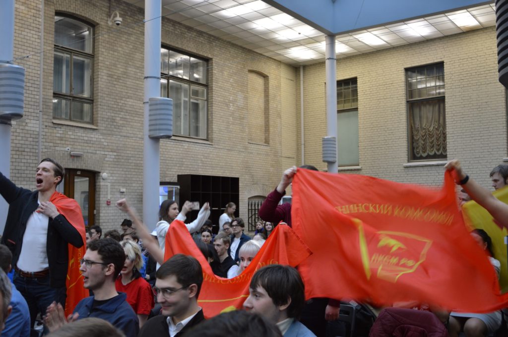 Во время дебатов команде комсомола помогала многочисленные группа поддержки с нашей символикой.