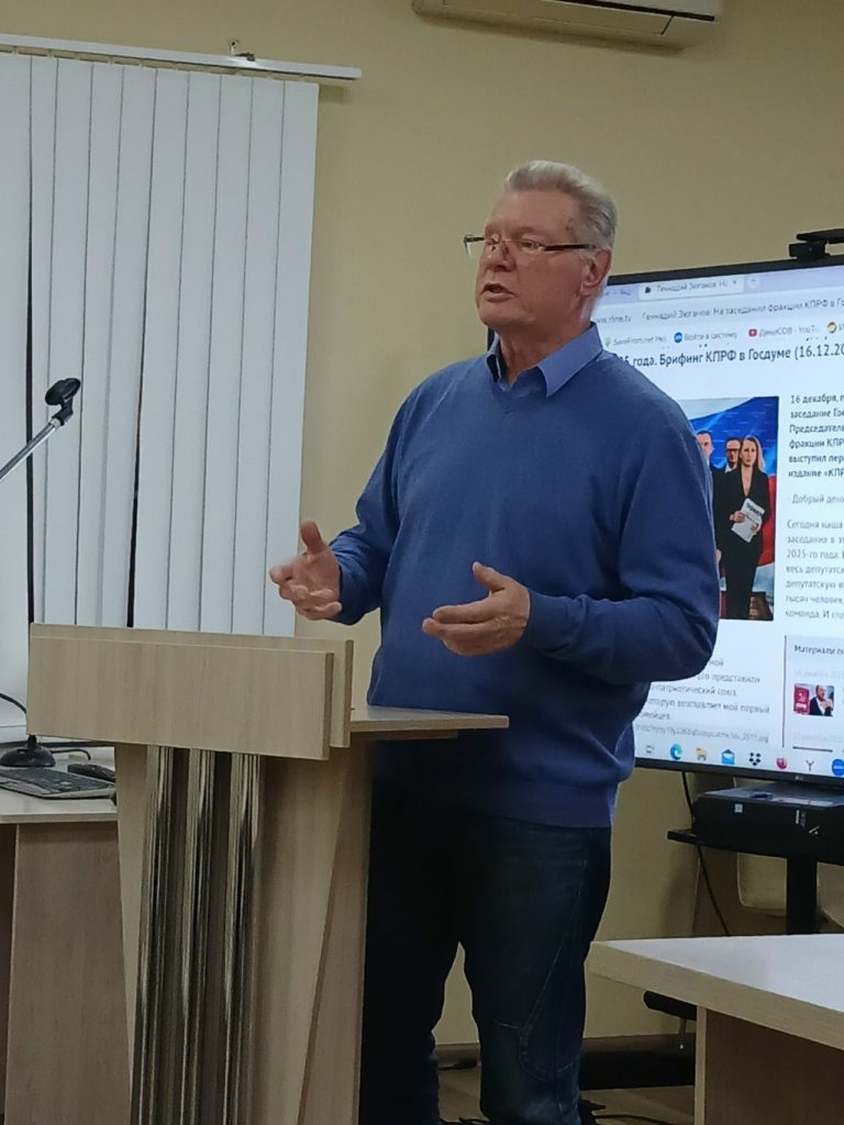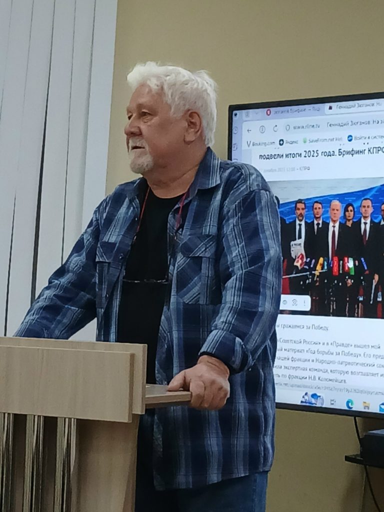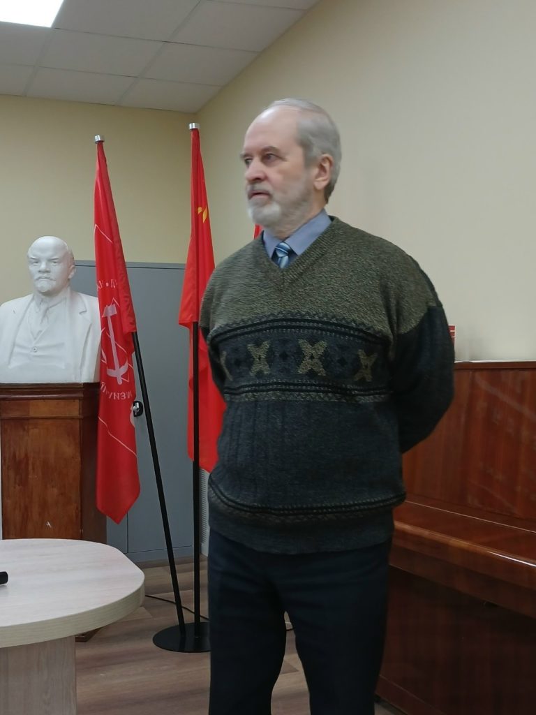 С установочным докладом выступил профессор СПбГУ, доктор исторических наук Владимир Фокин, являющийся руководителем Центра политической учёбы при горкоме КПРФ и научным руководителем Научно-экспертного совета по развитию марксистско-ленинской идеологии. Анализируя феномен фашизма, Владимир Иванович отметил, что такая европейская социальная наука, как «геополитика», фактически пропагандирует расистские взгляды, пришедшие к нам из Европы. Один из основателей геополитики, германский военный Карл Хаусхофер и его соратник — философ Карл Шмидт «научным образом» обосновывали завоевательные стремления германского империализма. В своей работе «Жизненное пространство и рейх»* (признана в России экстремистской, внесена в перечень запрещённых экстремистских материалов) Шмидт пытался «доказывать правоту» экспансионистской политики Третьего рейха по завоеванию Польши и других славянских земель. Его британский «коллега» — соперник в научном сообществе Хэлфорд Маккиндер ратовал за «бремя белого человека» и колониальную политику «морской державы» Великобритании. В научной работе «Столкновение цивилизаций» известного западного мыслителя Самуэля Хантингтона и в теории американского профессора Джозефа Ная про «мягкую силу», по мнению Фокина, культивируется военное противостояние между народами и возможности манипулирования сознанием целых наций во имя их эксплуатации и извлечения прибыли западными элитами.
