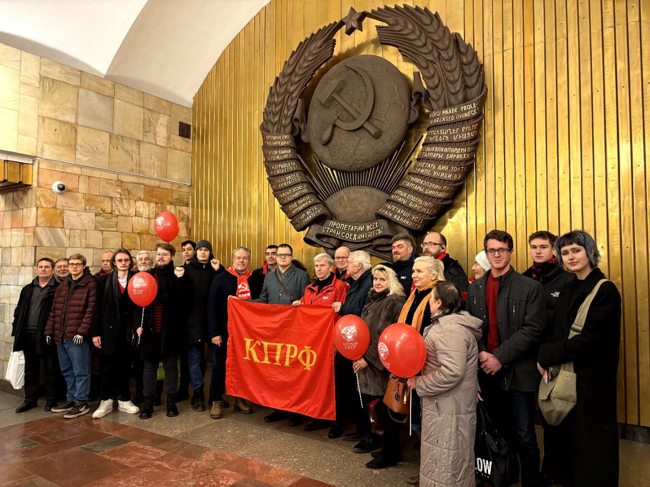 30 декабря отмечается важная дата – день основания СССР. В этот день коммунисты традиционно собрались на станции метро «Гражданский проспект» для того, чтобы поздравить жителей города с праздником. Пока одна группа коммунистов проводила возложение цветов к монументальному изображению герба СССР, другие товарищи раздавали красные шарики на улице, на выходе из метро.
