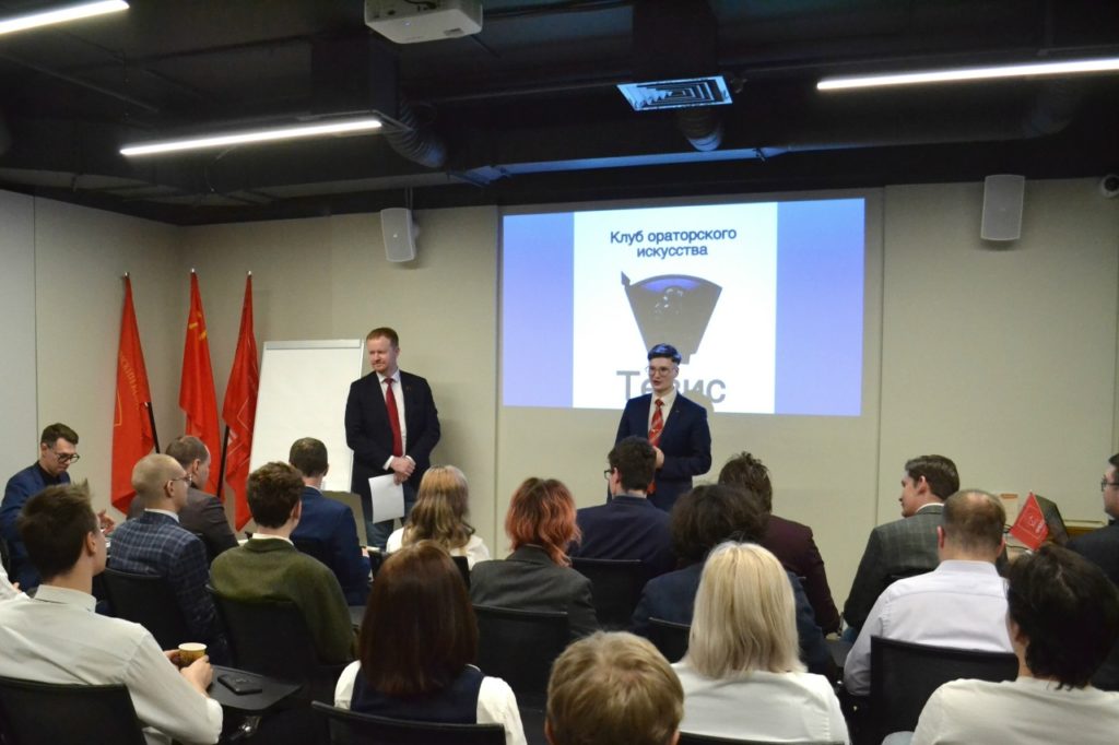В начале мероприятия с приветственными словами к участникам обратились Первый секретарь Санкт-Петербургского горкома КПРФ, лидер коммунистов в региональном парламенте Роман Кононенко, Первый секретарь Санкт-Петербургского горкома ЛКСМ РФ Егор Михайлов, куратор клуба, секретарь Санкт-Петербургского горкома ЛКСМ РФ Александр Рогожкин, а также член горкома комсомола, организатор клуба Никита Корбан. Они напомнили, что проект «Тезис» был создан комсомольцами после победы в весенних публичных дебатах об образовании и за полгода вырос в серьёзную школу, готовящую активистов ко всем видам публичных выступлений.