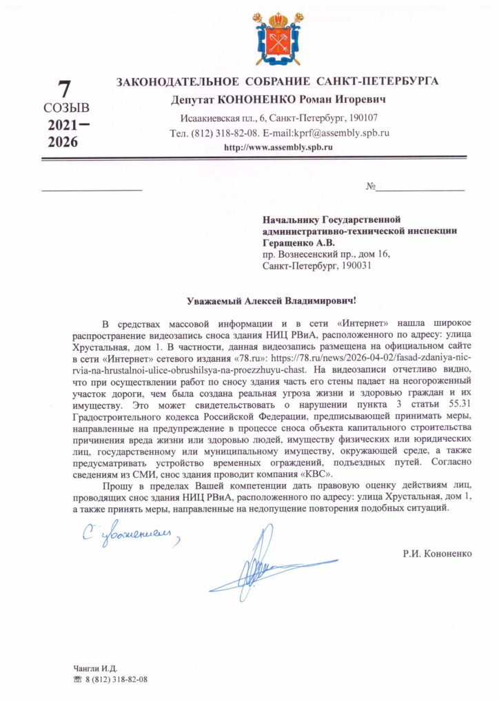 Коммунисты требуют прекратить погром нашего наследия и уважать мнение ленинградцев — петербуржцев!